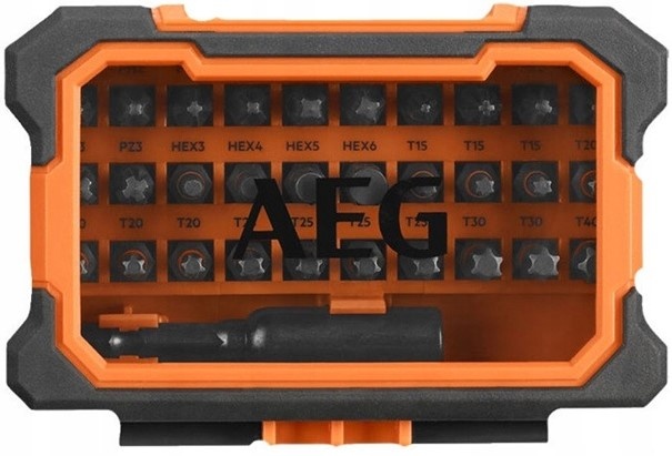 - Bity balistyczne 30 szt x 25 mm (1 x PH1, 3 x PH2, 2 x PH3, 1 x PZ1, 3 x PZ2, 2 x PZ3, 1 x HEX3, 1 x HEX4, 1 x HEX5, 1 x HEX6, 3 x TX15, 4 x TX20, 4 x TX25, 2 x TX30, 1 x TX40), 1 x Magnetyczny uchwyt 60 mm