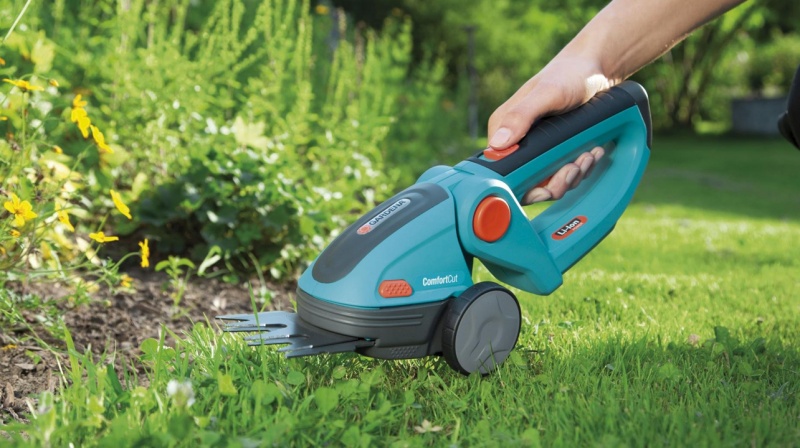 GARDENA ComfortCut akumulatorowe nożyce umożliwiają wygodne przycinanie brzegów trawników bez użycia kabla.