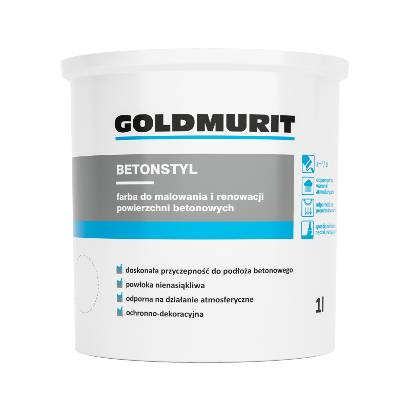 Farba Betonstyl w kolorze białym to wodorozcieńczalna farba ochronno-dekoracyjna przeznaczona do malowania i renowacji powierzchni betonowych.