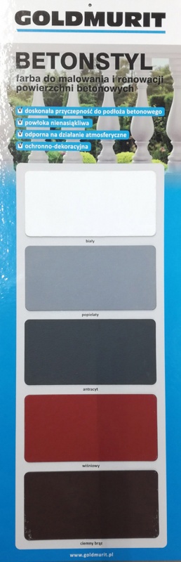 Betonstyl to wodorozcieńczalna farba ochronno-dekoracyjna marki Goldmurit, przeznaczona do malowania i renowacji powierzchni betonowych.