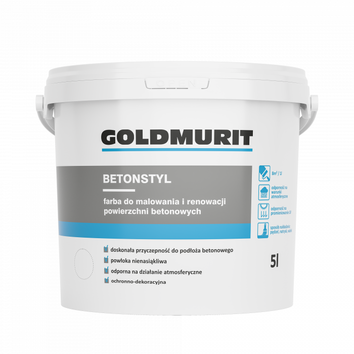 Farba Betonstyl w kolorze wiśniowym to wysokiej jakości, wodorozcieńczalna farba akrylowo-silikonowa marki Goldmurit, przeznaczona do ochrony i dekoracji powierzchni betonowych.