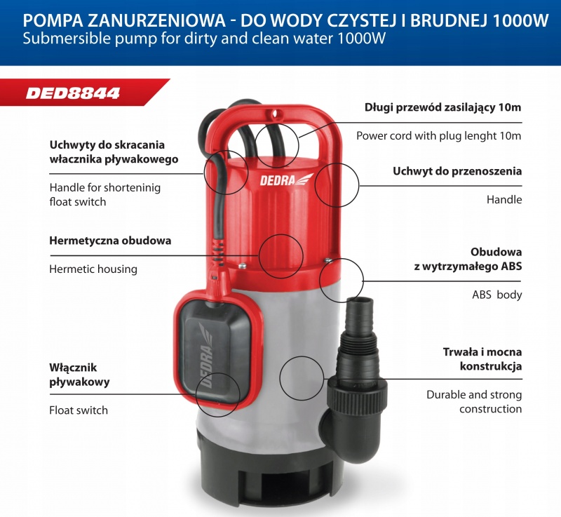 Pompa zanurzeniowa Dedra DED8844 do wody czystej i brudnej – Wydajność i niezawodność w codziennym użytkowaniu