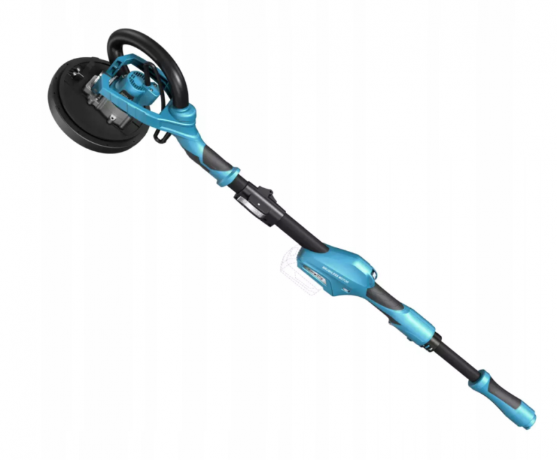 To, co wyróżnia tę szlifierkę, to poziomujące mocowanie na głowicy, które niezmiernie ułatwia pracę przy suficie, oraz specjalnie zaprojektowana turbina, która zaciąga urobek prosto do worka. Dodatkowo, składana konstrukcja ułatwia przechowywanie oraz bezpieczny transport urządzenia, a teleskopowy, składany wysięgnik o długości 130-160 cm umożliwia dostosowanie urządzenia do wzrostu użytkownika lub warunków w pomieszczeniu