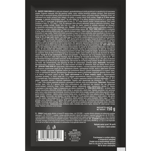 Drożdże gorzelnicze Turbo Grom 48hBrowin13,98 zł / szt Nr katalogowy: 5908277706517 Dostępność: w magazynie Dostawa: od 14 zł ilość Drożdże gorzelnicze Turbo Grom 48h Dodaj do koszyka Kategorie: Dom, Winiarstwo Marka: Browin Informacje dodatkoweParametry Pliki do pobraniaPliki Informacje dodatkowe Pojemność 150 g KCH 098891.pdf 228 KB Informacje na temat bezpieczeństwa Producent Nazwa: BROWIN SPÓŁKA Z OGRANICZONĄ ODPOWIEDZIALNOŚCIĄ SP.K. Kraj: Polska Adres: Pryncypalna, 93-373 Łódź Email: browin@browin.pl Numer telefonu: 48 42 23 23 200
