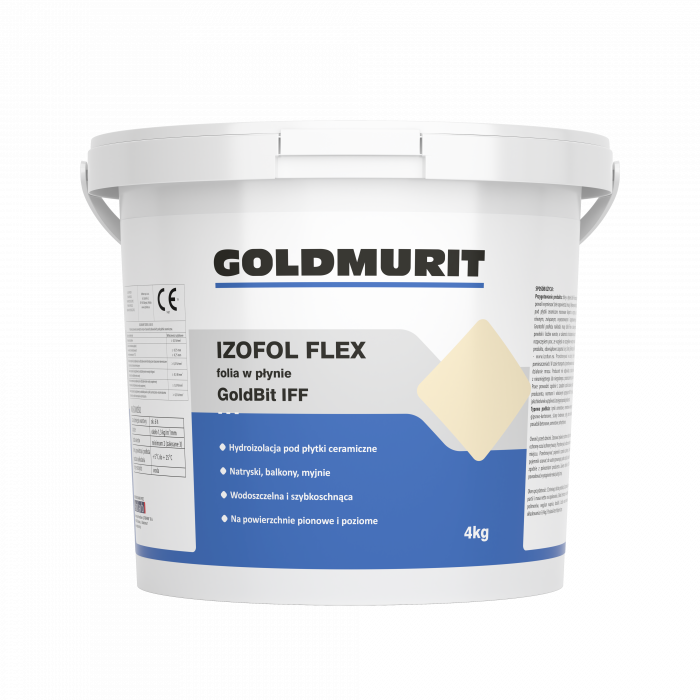 Folia w płynie Izofol Flex GoldBit IFF to gotowa do użycia, jednoskładnikowa masa uszczelniająca na bazie dyspersji polimerów z dodatkiem środków uszlachetniających. Przeznaczona jest do wykonywania przeciwwilgociowych powłok uszczelniających podłoża budowlane pod wykładziny ceramiczne, zarówno wewnątrz, jak i na zewnątrz budynków.