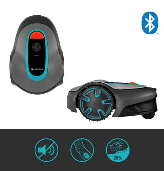 - Zdalne sterowanie przez Bluetooth – Aplikacja GARDENA Bluetooth umożliwia łatwe sterowanie robotem, ustawianie harmonogramów oraz monitorowanie pracy kosiarki na odległość do 10 metrów.