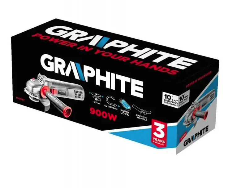 Szlifierka kątowa Graphite to niezawodne narzędzie do cięcia i szlifowania różnych materiałów, takich jak metal, kamień czy ceramika. Dzięki średnicy tarczy 125 mm, urządzenie sprawdzi się zarówno w precyzyjnych zadaniach, jak i przy obróbce większych powierzchni.