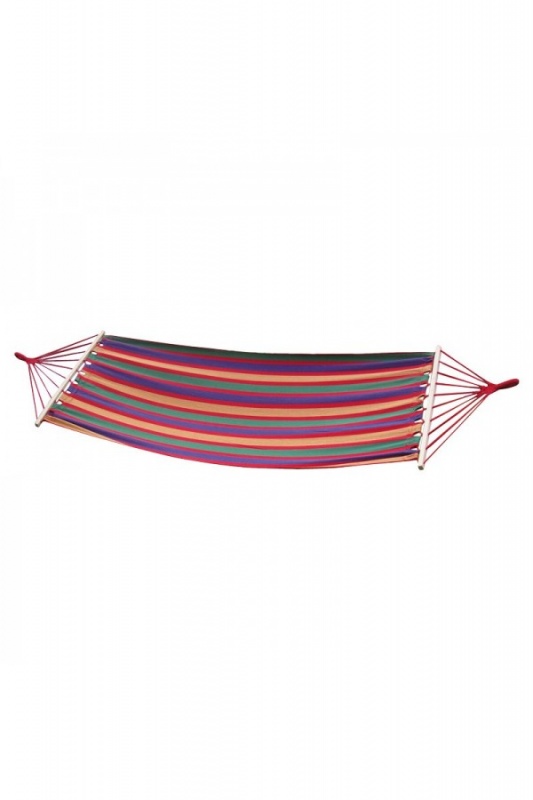 Jednoosobowy hamak wzmocniony belką drewnianą jest idealnym dodatkiem w ogrodzie. Hamak wykonany z wysokiej jakości bawełny posiada wygodne siedzisko dopasowujące się do kształtu ciała. W produkcie zwiększono ilość solidnych link, dzięki czemu ciężar rozkłada się równomiernie, co znacznie wpływa na możliwość komfortowego wypoczynku.