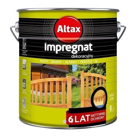 Altax Impregnat żywiczny to wysokiej jakości preparat, który dzięki systemowi żywic doskonale odżywia strukturę drewna, zabezpieczając przed szkodliwym działaniem czynników atmosferycznych. Dodatowym atutem jest to, że tworzy on powłokę odporną na grzyby i pleśń. Preparat umożliwia wykonanie pracy w krótkim czasie, za to z efektem na długie lata – do 9 lat ochrony. Nadaje się do zabezpieczania elementów wykonanych zarówno z drewna oszlifowanego jak i nieoszlifowanego.