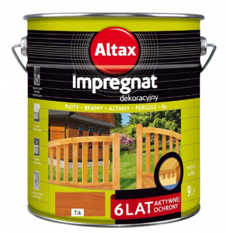 Altax Impregnat żywiczny to wysokiej jakości preparat, który dzięki systemowi żywic doskonale odżywia strukturę drewna, zabezpieczając przed szkodliwym działaniem czynników atmosferycznych. Dodatowym atutem jest to, że tworzy on powłokę odporną na grzyby i pleśń. Preparat umożliwia wykonanie pracy w krótkim czasie, za to z efektem na długie lata – do 9 lat ochrony. Nadaje się do zabezpieczania elementów wykonanych zarówno z drewna oszlifowanego jak i nieoszlifowanego.