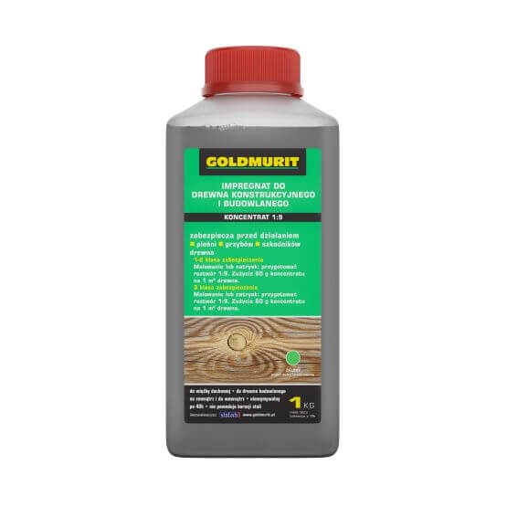 Impregnat do drewna konstrukcyjnego i ogrodowego Koncentrat 1:9 Bezbarwny to wysokiej jakości środek marki Goldmurit, przeznaczony do ochrony drewna przed szkodliwym działaniem czynników biologicznych.