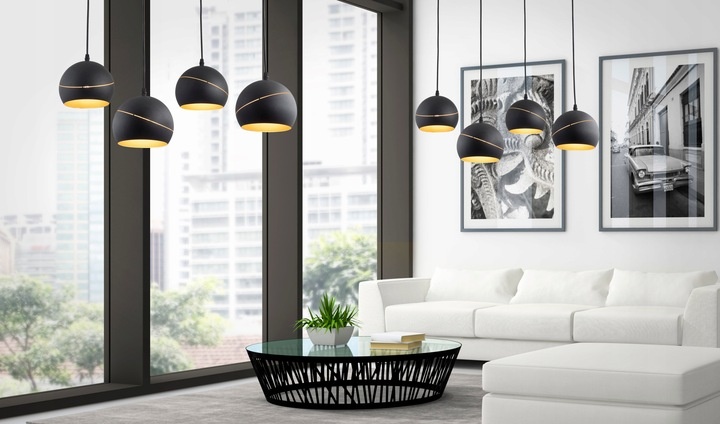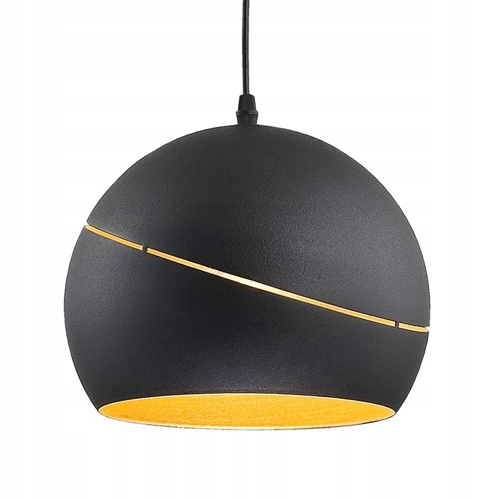Lampa wisząca YODA BLACK ORBIT 2085 to typ oświetlenia z delikatnym, dekoracyjnym nacięciem na czaszy, które nadaje modelowi niepowtarzalnego wyglądu. Produkt dostosowany jest do żarówki o trzonku E27 i maksymalnej mocy 60W. Źródło światła delikatnie odbija się w złotym wnętrzu obudowy tworząc ciekawy efekt wizualny. Lampa zwisa z okrągłej podsufitki na kablu, dzięki czemu osiąga maksymalną wysokość 115 cm. Minimalistyczny wygląd i nowoczesna złoto-czarna kolorystyka sprawia, że model sprawdzi się jako oświetlenie dodatkowe w wielu aranżacjach.