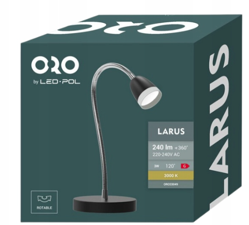 Lampa biurkowa Larus LED o mocy 3W i jasności 240lm w kolorze czarnym to nowoczesne i funkcjonalne oświetlenie, idealne do biur, pracowni i miejsc nauki. Dzięki zastosowaniu energooszczędnej technologii LED zapewnia jasne i neutralne światło, które nie męczy oczu nawet podczas długotrwałego użytkowania. Elastyczne ramię pozwala na precyzyjne ustawienie kąta padania światła, co zwiększa komfort pracy.