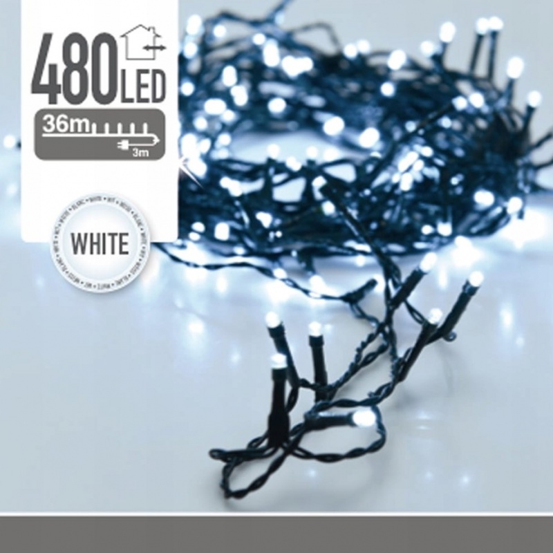 Lampki LED 480 marki Koopman International w zimnej bieli to elegancka i energooszczędna dekoracja idealna na okres zimowy. Dzięki 480 diodom LED, które emitują chłodne, jasne światło, tworzą wyjątkową atmosferę. Sprawdzą się świetnie zarówno wewnątrz, jak i na zewnątrz, ozdabiając choinki, okna, balkony czy ogrody. Trwała konstrukcja i łatwy montaż pozwalają na długotrwałe użytkowanie, a energooszczędna technologia LED gwarantuje niskie zużycie energii.