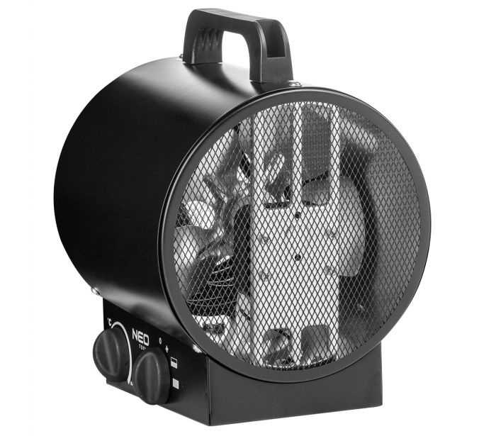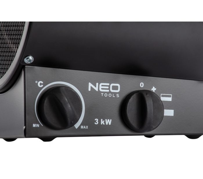 Nagrzewnica elektryczna Neo 90-066 o mocy 3kW z regulowanym termostatem to przenośne źródło ciepła, które sprawdzi się przy ogrzewaniu pomieszczeń takich jak warsztaty, garaże, domy, sklepy. Dla bezpieczeństwa użytkowania nagrzewnica posiada izolowany uchwyt z tworzywa sztucznego, a element grzejny wykonany został ze stali nierdzewnej, która zapewnia ochronę przed przegrzaniem. Malowana proszkowo obudowa jest z kolei zabezpieczona przed rdzewieniem. Mocna i trwała konstrukcja sprawia, że produkt jest niezwykle wytrzymały.