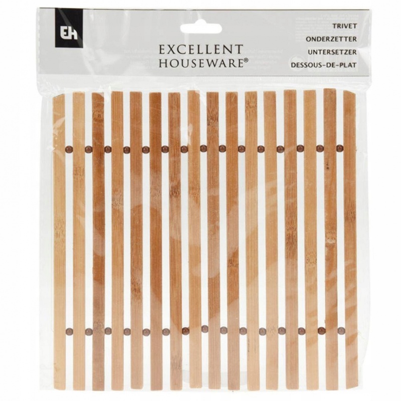 Podstawka pod gorące naczynia o wymiarach 18 x 18 x 0,5 cm. Wykonana z drewna bambusowego. Jest lekka, będzie pięknie prezentowała się na stole oraz blacie kuchennym. Posiada naturalne barwy więc pasuje do każdego wnętrza. Dzięki podstawce garnek i inne naczynia bezpośrednio po gotowaniu możemy podać na stół. Podstawka zapewni ochronę naszego stołu i blatu. Materiał z którego została wykonana podkładka jest odporny na wilgoć i odkształcenia, nie chłonie zapachów, szybko schnie. Drewno bambusowe jest materiałem ekologicznym i bezpiecznym dla zdrowia. Wyprodukowano zgodnie z europejskimi standardami.