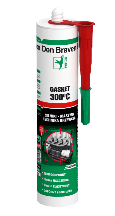 Den Braven Gasket Sealant to jednoskładnikowy, trwale elastyczny silikon, którego niewątpliwą zaletą i najważniejszą cechą charakterystyczną jest odporność na wysoką temperaturę- do +300°C.