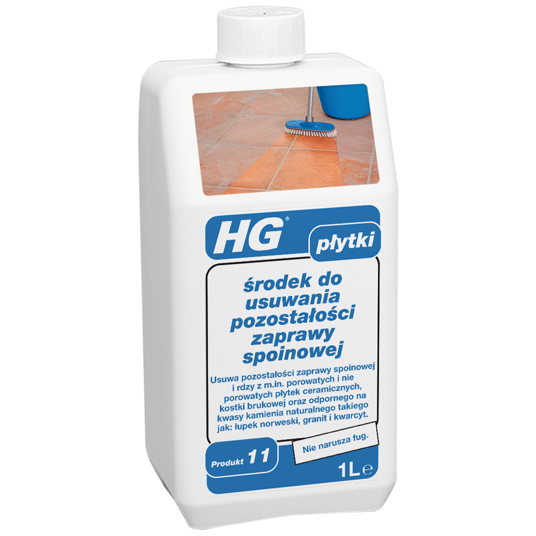 HG środek do usuwania pozostałości zaprawy spoinowej 1 l (Produkt 11) służy do usuwania resztek cementu ze wszystkich rodzajów porowatych i nieporowatych płytek ceramicznych i kamiennych płyt chodnikowych. Nadaje się także do stosowania w przypadku naturalnych kamieni niezawierających wapnia, takich jak łupek norweski, granit i kwarcyt.