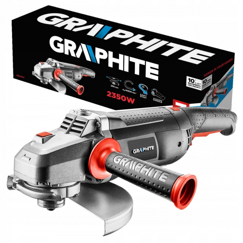 Wysokiej klasy szlifierka Graphite 59GP004 to produkt z profesjonalnej linii narzędzi marki. Posiada beznarzędziową zmianę położenia osłony tarczy, a także beznarzędziową wymianę tarczy. Oprócz tego w produkcie zastosowano bezpieczny, dwustopniowy przycisk włącznika oraz ergonomiczną, obrotową rękojeść główną dająca niewiarygodny komfort pracy. Niewątpliwą zaletą szlifierki jest również łatwy dostęp do szczotek węglowych, jak i również możliwość mocowania rękojeści dodatkowej w 3 punktach.