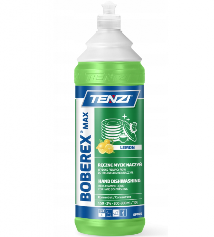 Tenzi Boberex Max Lemon 1L to wyjątkowo wydajny płyn do mycia naczyń, który skutecznie usuwa tłuszcz i zanieczyszczenia, pozostawiając naczynia nieskazitelnie czyste. Jego skoncentrowana formuła sprawia, że nawet niewielka ilość preparatu wystarcza na wiele zastosowań. Dzięki cytrynowemu zapachowi oraz delikatnemu działaniu, płyn jest przyjazny dla skóry rąk, nie podrażniając ich nawet przy długotrwałym kontakcie. Idealny zarówno do codziennego użytku w domu, jak i w profesjonalnych kuchniach.