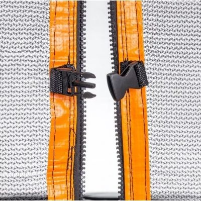 Rama jak i sprężyny są zabezpieczone i osłonięte 2-warstwową, odporną na wilgoć pianką PE. Siatka ochronna montowana jest z kolei wewnątrz trampoliny, co zabezpiecza użytkownika przed wypadnięciem, a także przed przeważeniem konstrukcji.