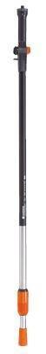 GARDENA teleskopowy trzonek przepływowy – jego długość można stopniowo regulować w zakresie od 155 do 260 cm. Trzonek został wykonany z aluminium wysokiej jakości, dzięki czemu jest lekki i wytrzymały. Proste, pewne i bezpieczne mocowanie śrubowe umożliwia łatwe podłączanie do trzonka wszystkich narzędzi przyłączeniowych Cleansystem. Pokryty powłoką z tworzywa sztucznego uchwyt zapewniający dobre trzymanie przyjemnie leży w dłoni, nie powoduje zadrapań, nie wyślizguje się z ręki ani nigdy nie jest nieprzyjemnie zimny. Ilość i ciśnienie przepływającej wody można wygodnie regulować przy uchwycie. Przepływ wody można regulować bezstopniowo, a także zablokować. Trzonek jest wyposażony w praktyczny i odporny na uszkodzenia dozownik do środków pielęgnacyjnych firmy GARDENA (art. nr 1680, 1682, 1684, 5730). Przy użyciu tego produktu można rozprowadzać zarówno czystą wodę, jak i wodę z domieszką środków pielęgnacyjnych lub czyszczących.
