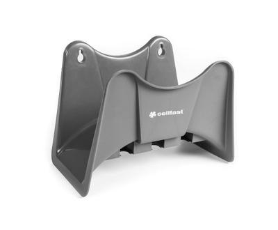 Poręczny wieszak na wąż o pojemności 25/30 m wyposażony w uchwyty do wieszania zraszaczy lub narzędzi. Kolor może się różnić – w ofercie szare i niebieskie.