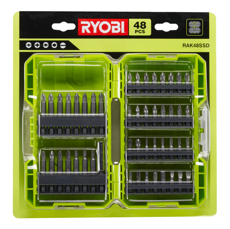 Końcówki wkręcające RAK48SSD Ryobi to niezbędne uzupełnienie każdej wkrętarki znajdującej się w wyposażeniu przydomowego warsztatu. Zestaw składa się z 48 bitów w różnych rozmiarach, dzięki czemu użytkownik może wykorzystać je w rozmaitych zadaniach. Poszczególne elementy uporządkowano w kasecie z tworzywa sztucznego, która chroni przed zagubieniem osprzętu, jak też ułatwia utrzymanie porządku w warsztacie, garażu czy w bagażniku samochodu, w zależności od miejsca przechowywania.