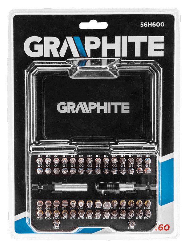 Zestaw końcówek Graphite 56H600 to produkt charakteryzujący się swoją kompaktowością i uniwersalnością. Duży komplet końcówek zawiera różne rodzaje bitów i najczęściej używane rozmiary, które są powtórzone po kilka razy.