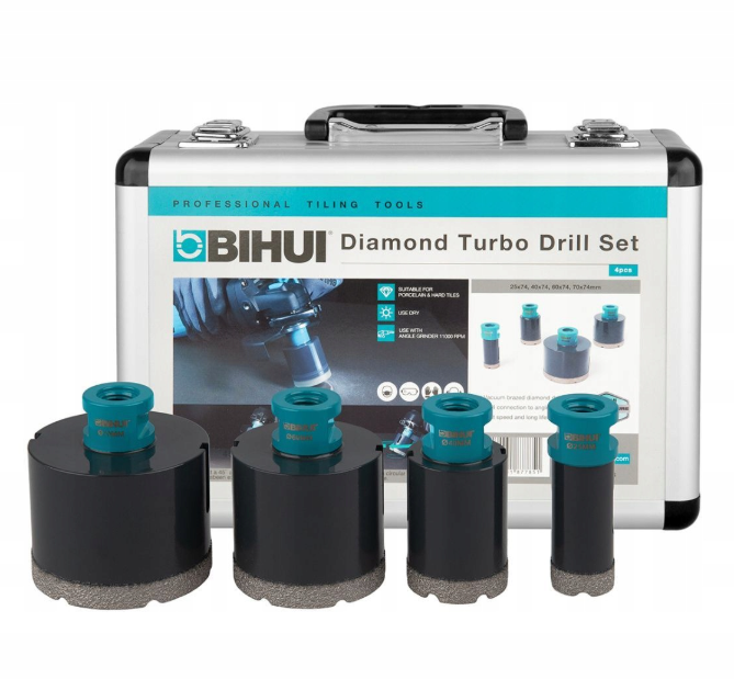 ZESTAW OTWONIC wierteł diamentowych do gresu+WALIZKA 6/8/10/12 mm ADAPTER
