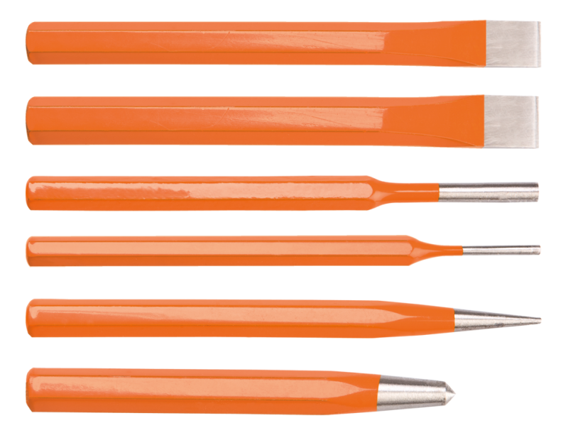 Zestaw wybijaków i przecinaków NEO zawiera 2 wybijaki, 2 przecinaki, dobijak stożkowy i punktak. Wszystkie elementy wykonane z wysokiej jakości stali chromowo-wanadowej, zapewniającej długą żywotność narzędzia. Zamknięte w praktycznym opakowaniu z tworzywa sztucznego, ułatwiającym przechowywanie i transport.