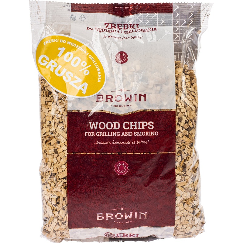 Zrębki wędzarnicze GRUSZA to specjalnie rozdrobnione drewno owocowe, które świetnie nadaje się do wędzenia oraz grillowania. Dzięki zachowaniu jednorodności zrębków, łatwo utrzymuje się stałą temperaturę podczas ich spalania. Dym ze spalanych zrębków przenika w głąb potrawy nadając jej odpowiedni aromat i złocistobrązowy kolor.